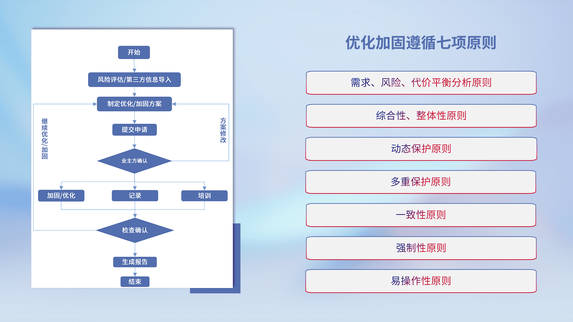 最大程度利用现有资产,,,对评估发现的问题进行封堵与整改,,,防止漏洞被利用,,,,提升整体网络安全性,,,为客户带来高标准的优化加固服务。。